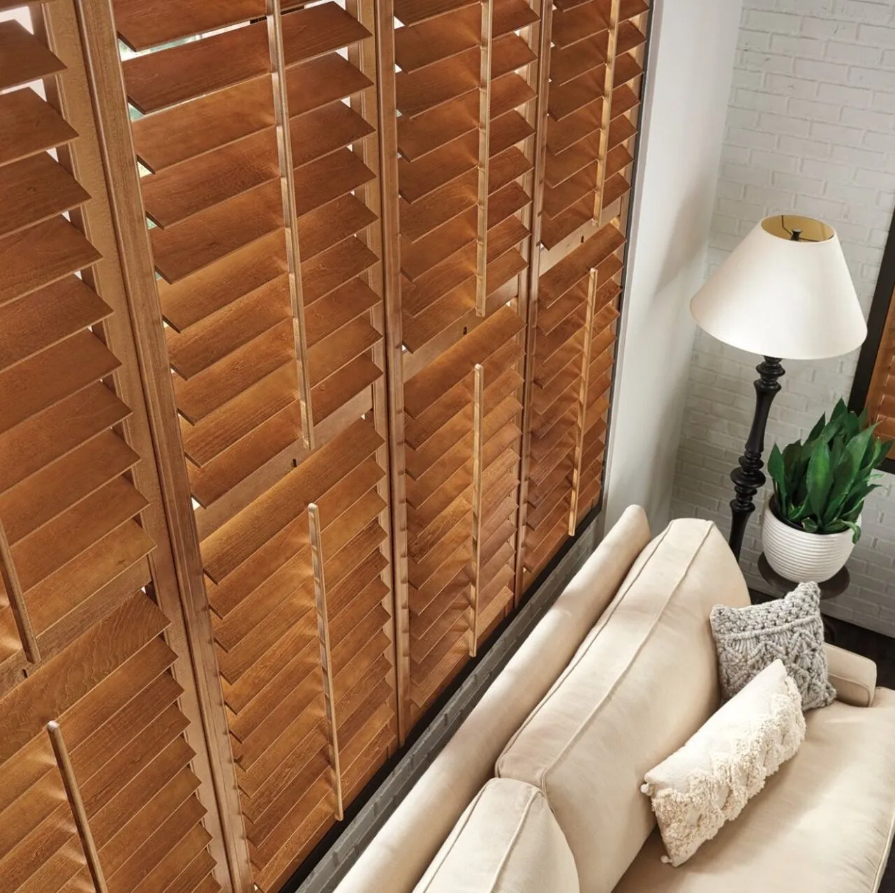 Add warmth to any room with wood and faux wood blinds. Choose from a rich spectrum of natural stains and painted finishes, with a range of slat sizes.